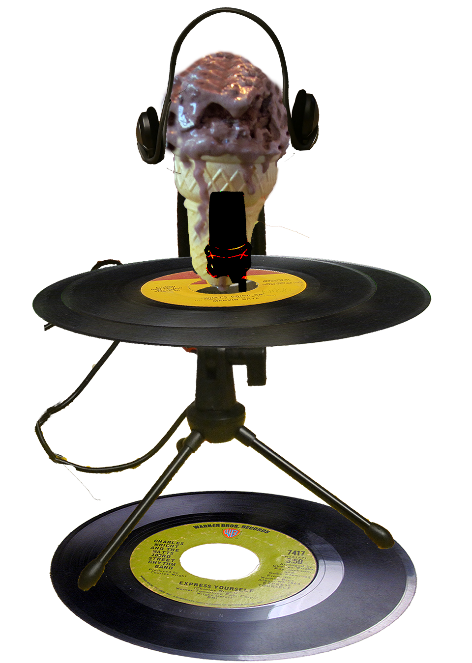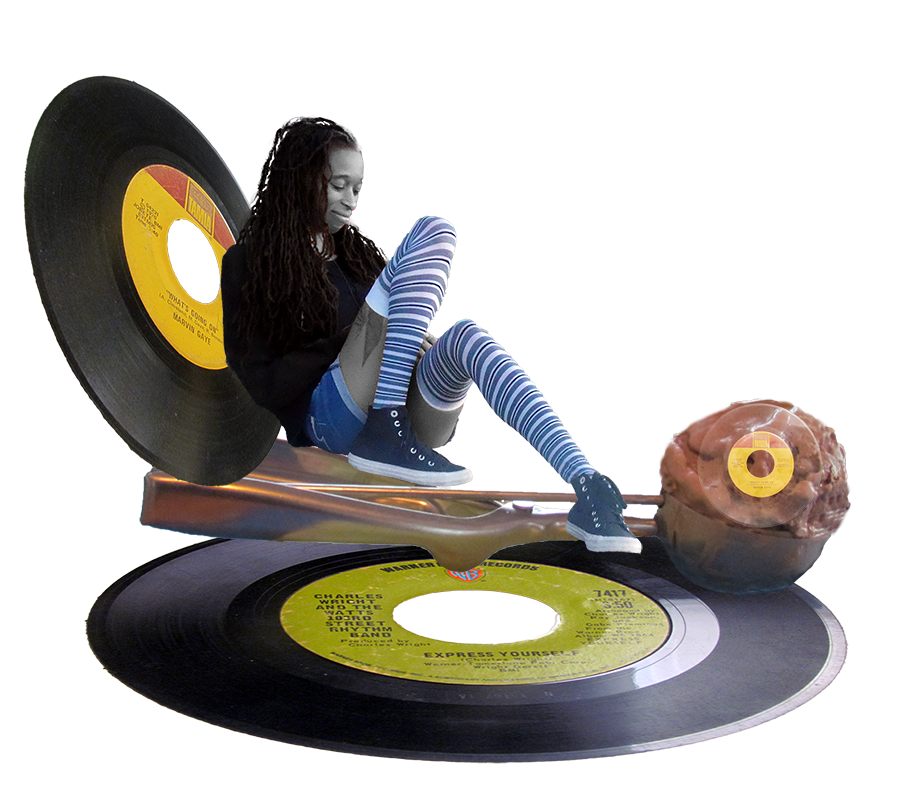 Artwork of Sweet Peaceful Young Woman and 45 Records Collage by Nikki Williams Copyright 2021/2025